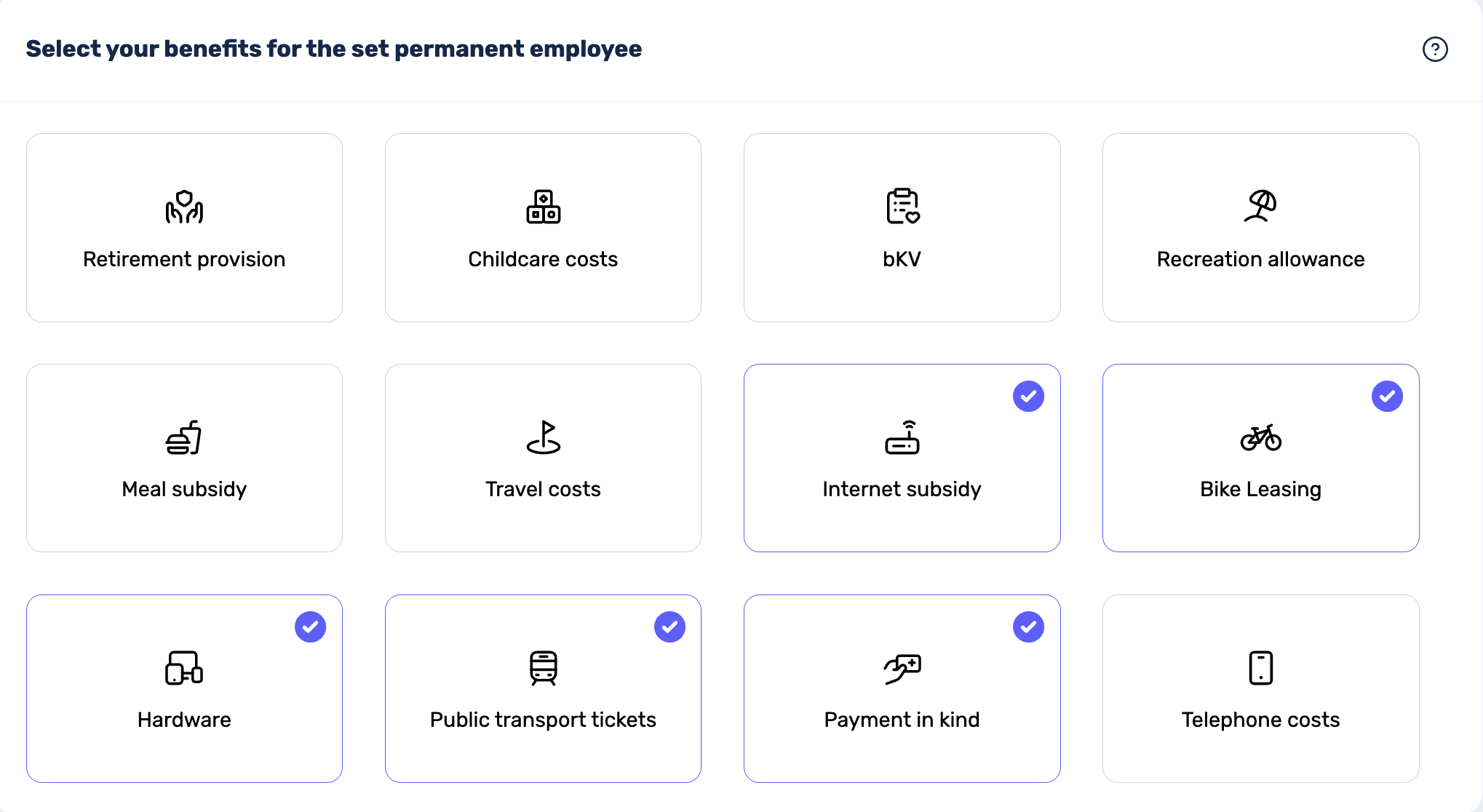 In the next step, you can select all the benefits that you want to display to employees with this package: