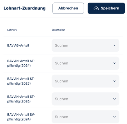 Wenn die Verknüpfung erfolgreich hergestellt werden konnte, könnt ihr die Lohnarten entsprechend zuordnen. Ihr seht dafür direkt neben den Benefits ein Drop Down, in dem ihr bereits vorhandene Vergütungen aus Personio auswählen könnt.